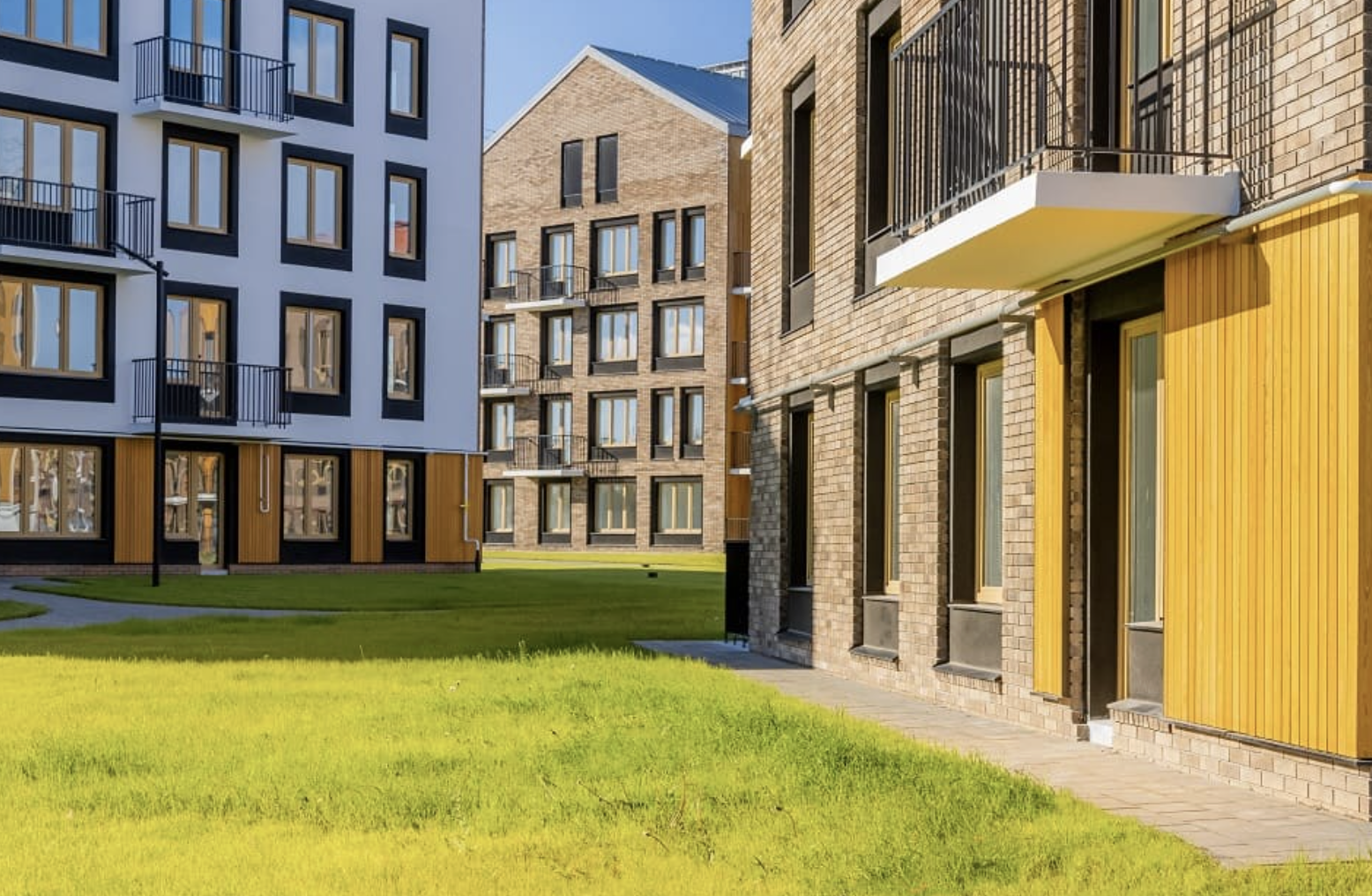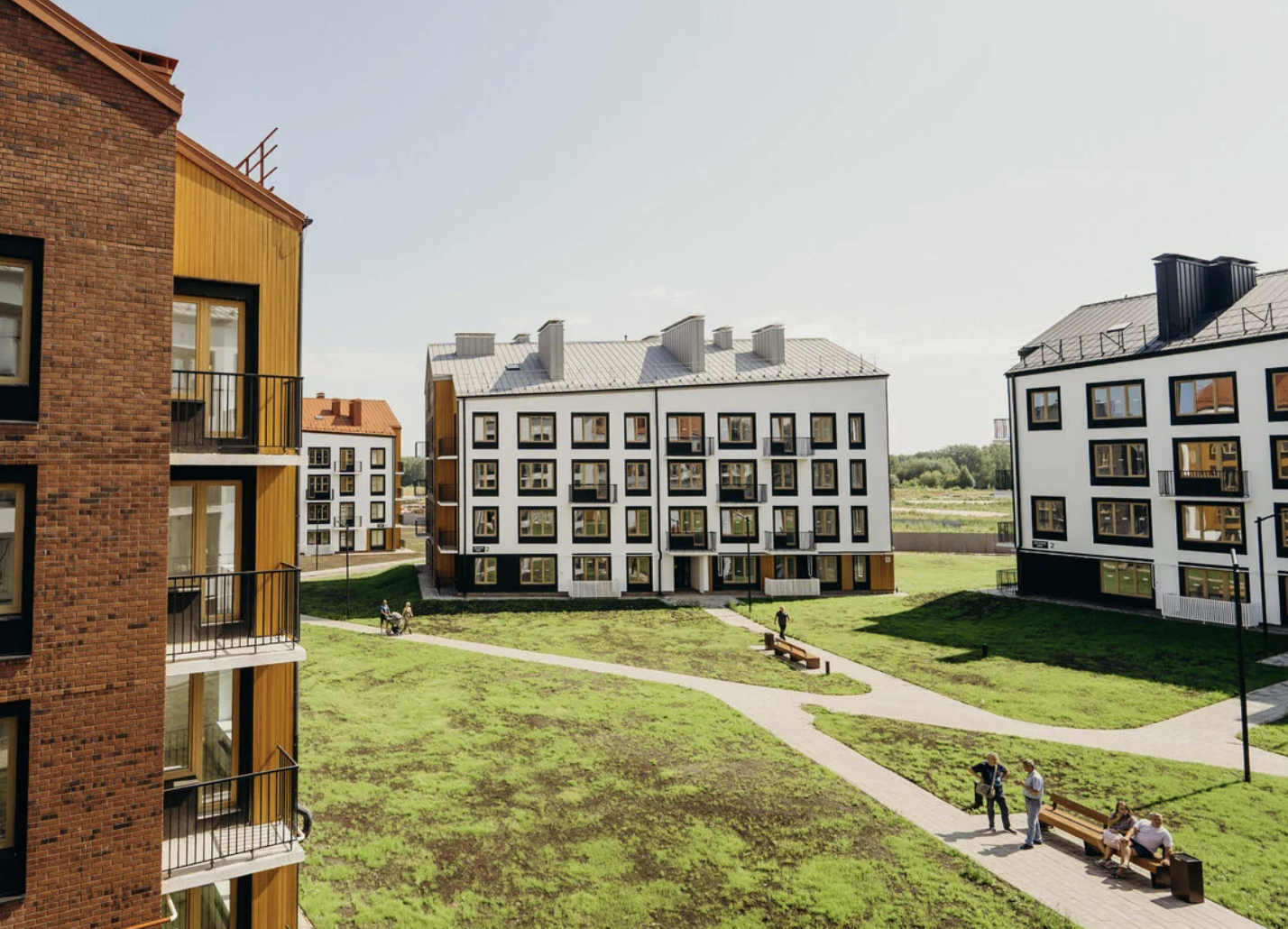 В проекте будет всё необходимое для комфортной жизни: два детских сада, школа и поликлиника. На первых этажах домов откроются магазины, кафе и полезные сервисы. Многоуровневый ландшафт квартала мы благоустроим и превратим в уникальное место для прогулок на свежем воздухе и игр с детьми. А во дворах-парках построим детские и спортивные площадки.