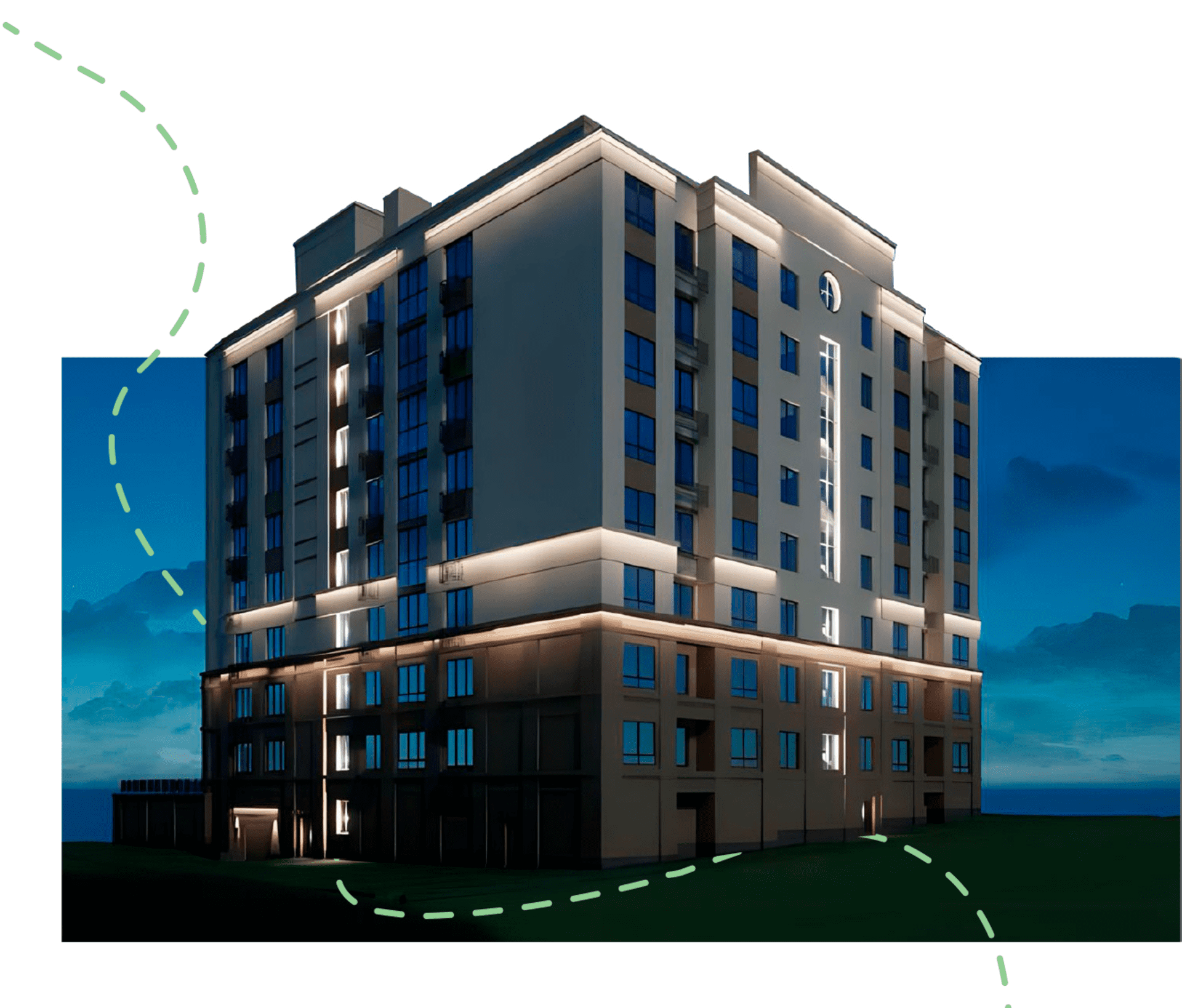 В доме представлены квартиры различных планировок: однокомнатные, двухкомнатные и трехкомнатные. Каждая квартира отличается продуманным дизайном и удобной планировкой, что позволяет максимально эффективно использовать пространство. Большие окна наполняют помещения светом и создают атмосферу уюта.