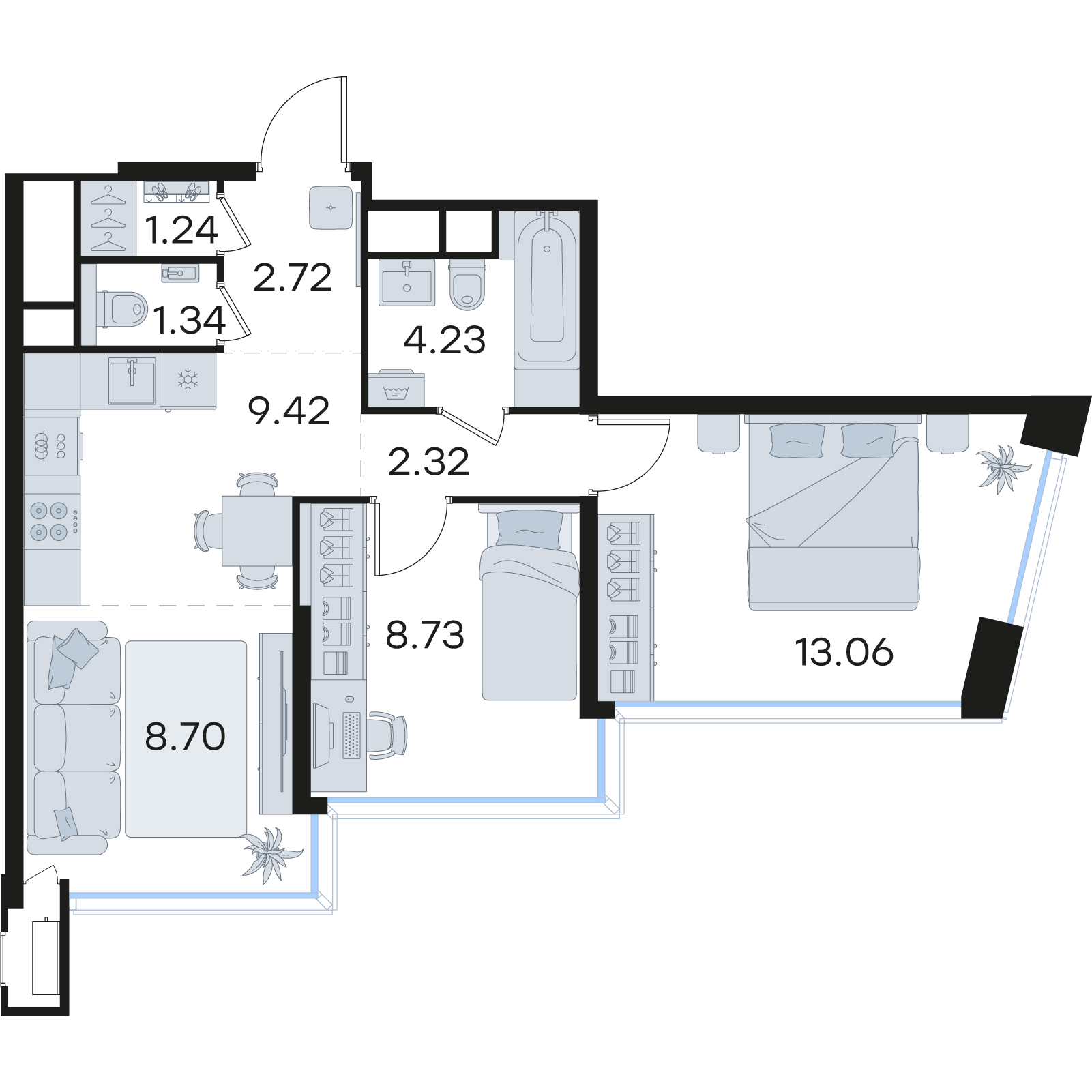 В проекте СТАТУС на Черниговской доступен широкий выбор планировочных решений от небольших уютных студий площадью 28,3 м2 до двухуровневых квартир с террасами площадью до 188,7 м2 и потрясающими видами на Нижегородские закаты. Все квартиры сдаются в черновой отделке, что позволяет нашим резидентам воплотить в своем доме любую дизайнерскую идею.